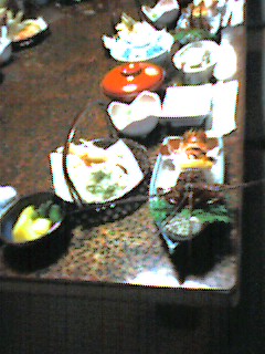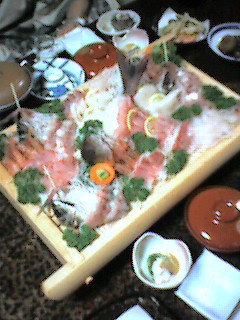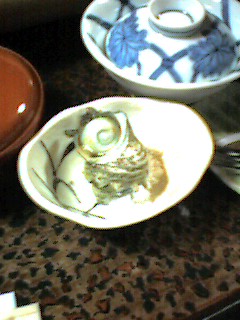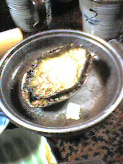 18:00ごろまでには山本さんを除いて全員がそろっていましたが、ここで山本さんに 連絡を入れると、なんとツーリング開催日を一週間間違っていて、今東京で飲んでいる とのこと。もちろんいまさら参加はできません。で、山本さんの分の料理(アワビコース)は みんなで分けました。山本さんありがとう。