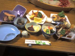 今回は、非常に身のつまった渡り蟹が出てきました。その他にも舟盛、焼き魚、筋子など、 さまざまなご馳走を出してくれました。