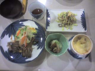 ここは飯が豪華なのです。写真はW-ZERO3で640x480で撮ったものをさらに50%に縮小 しているのでショボイですが、実物は実に繊細で、またおいしいものでした。 ご飯はまつたけごはんでした。